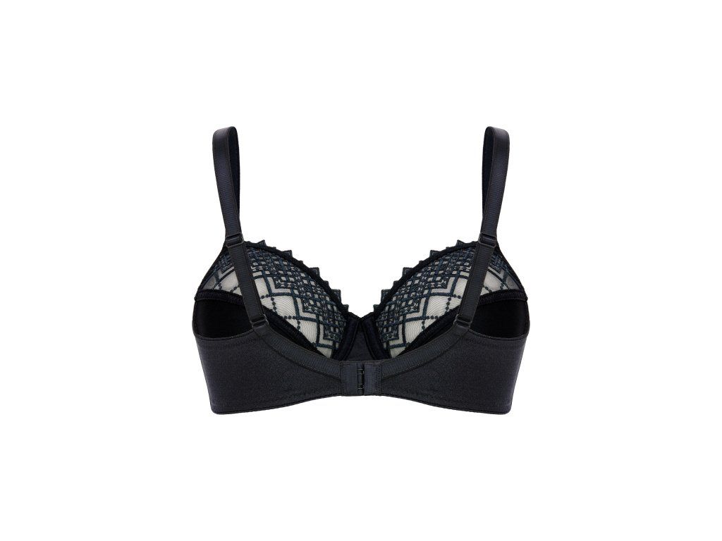 Az elegáns, finoman csillogó hímzett részletek kifinomult megjelenést biztosítanak, amely diszkréten emeli ki a melltartó stílusát. A gondosan kialakított szabás és a minőségi anyagok biztosítják a kényelmes illeszkedést és a tartósságot.